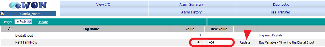 Su entrambi gli apparati andare in ViewIO.Sul MASTER scegliere un nuovo valore per il TAG di comando e premere UPDATE