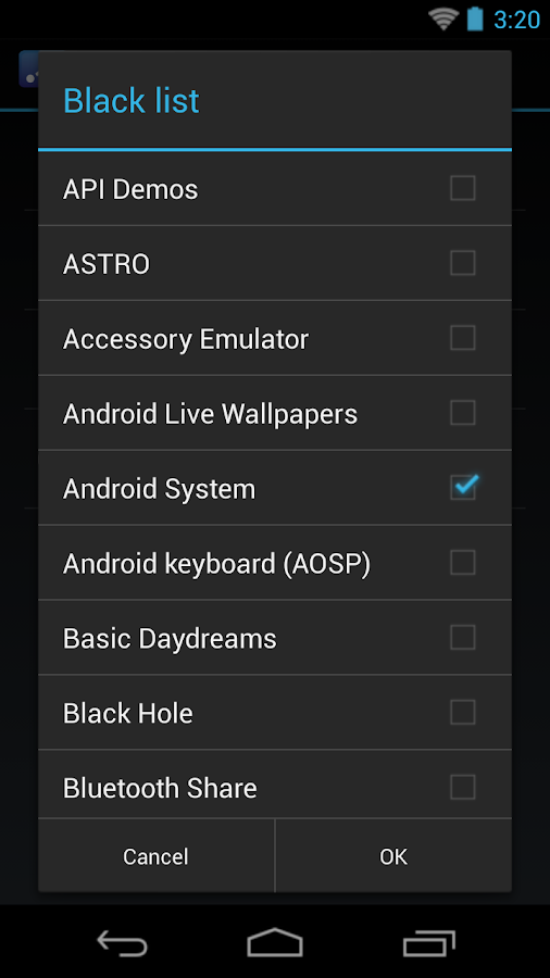 Watchify ha una BlackList che può essere settata subito dal primo avvio senza necessità di ricevere almeno una notifica dalle diverse applicazioni del cellulare.