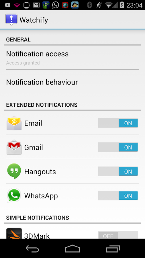 Nella lista basta scegliere quali notifiche nascondere e Watchify trasmetterà solo le restanti.